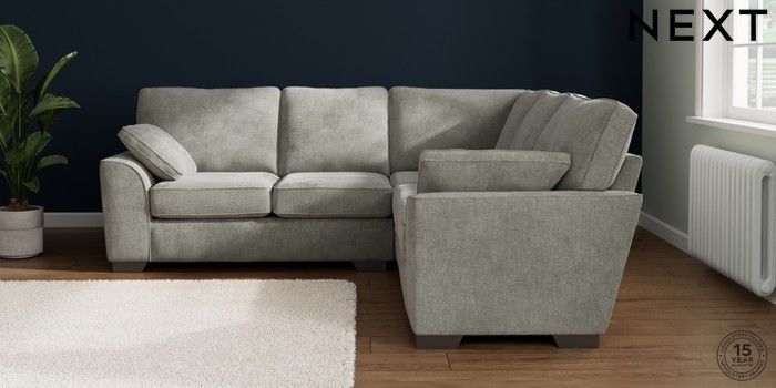 7.2.10 Buy Stamford Medium Corner Sofa - Universal Chunky Chenille Light Grey Large Square Angle - Gunmetal from the Seasons online shop Click here to use our website with more accessibility support, for example screen readers