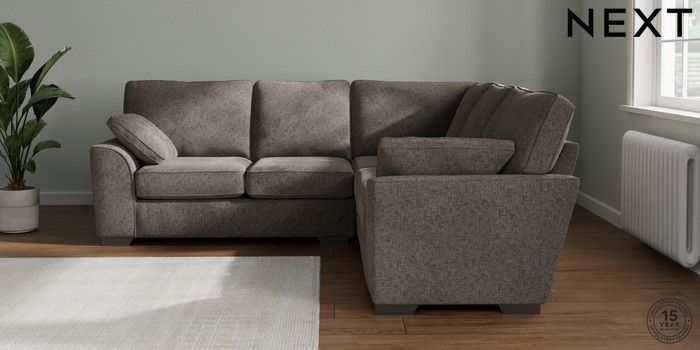7.2.10 Buy Stamford Medium Corner Sofa - Universal Chunky Chenille Mink Brown Large Square Angle - Gunmetal from the Seasons online shop Click here to use our website with more accessibility support, for example screen readers