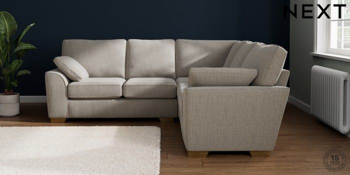 7.2.10 Buy Stamford Medium Corner Sofa - Universal Chunky Weave Dove Grey Large Square Angle - Brushed Brass from the Seasons online shop Click here to use our website with more accessibility support, for example screen readers