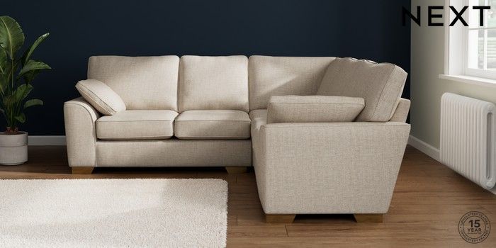 7.2.10 Buy Stamford Medium Corner Sofa - Universal Chunky Weave Mid Natural Large Square Angle - Brushed Brass from the Seasons online shop Click here to use our website with more accessibility support, for example screen readers