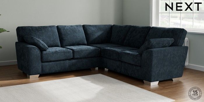 7.2.10 Buy Stamford Medium Corner Sofa - Universal Distressed Velour Midnight Blue Large Square Angle - Chrome Metal from the Seasons online shop Click here to use our website with more accessibility support, for example screen readers