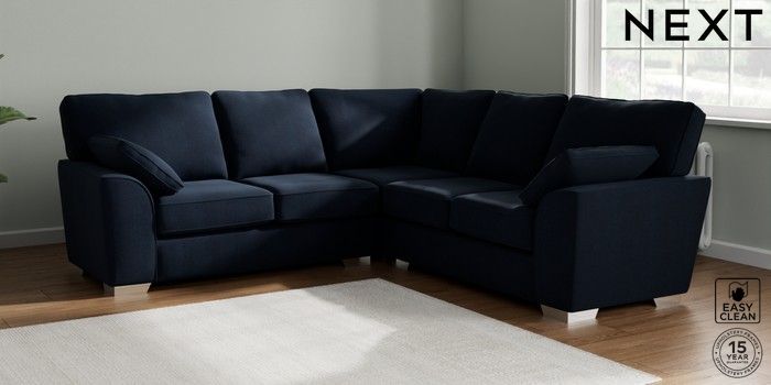 7.2.10 Buy Stamford Medium Corner Sofa - Universal Fine Chenille Easy Clean Dark Navy Blue Large Square Angle - Chrome Metal from the Seasons online shop Click here to use our website with more accessibility support, for example screen readers