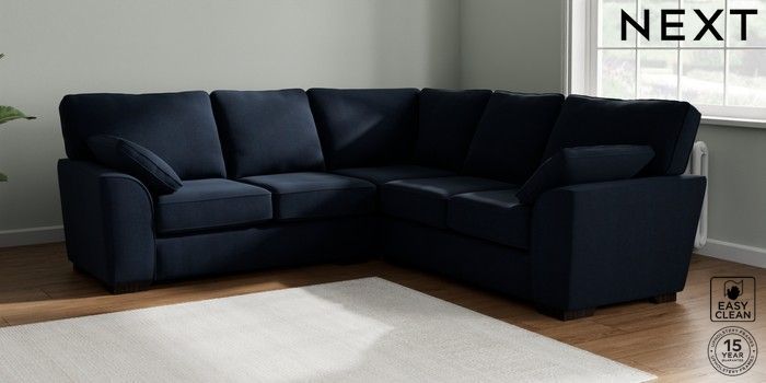7.2.10 Buy Stamford Medium Corner Sofa - Universal Fine Chenille Easy Clean Dark Navy Blue Large Square Angle - Dark from the Seasons online shop Click here to use our website with more accessibility support, for example screen readers
