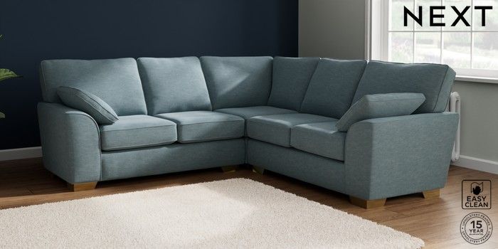 7.2.10 Buy Stamford Medium Corner Sofa - Universal Fine Chenille Easy Clean Mid Blue Large Square Angle - Brushed Brass from the Seasons online shop Click here to use our website with more accessibility support, for example screen readers