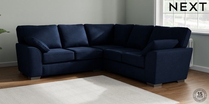 7.2.10 Buy Stamford Medium Corner Sofa - Universal Luxe Chenille Navy Blue Large Square Angle - Gunmetal from the Seasons online shop Click here to use our website with more accessibility support, for example screen readers