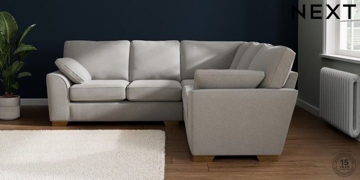 7.2.10 Buy Stamford Medium Corner Sofa - Universal Natural Mix Light Grey Large Square Angle - Brushed Brass from the Seasons online shop Click here to use our website with more accessibility support, for example screen readers