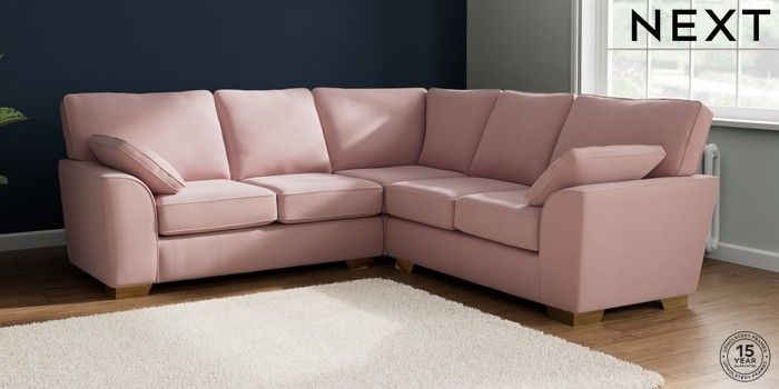 7.2.10 Buy Stamford Medium Corner Sofa - Universal Natural Mix Light Rose Pink Large Square Angle - Brushed Brass from the Seasons online shop Click here to use our website with more accessibility support, for example screen readers