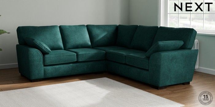 7.2.10 Buy Stamford Medium Corner Sofa - Universal Plush Chenille Dark Teal Green Large Square Angle - Dark from the Seasons online shop Click here to use our website with more accessibility support, for example screen readers