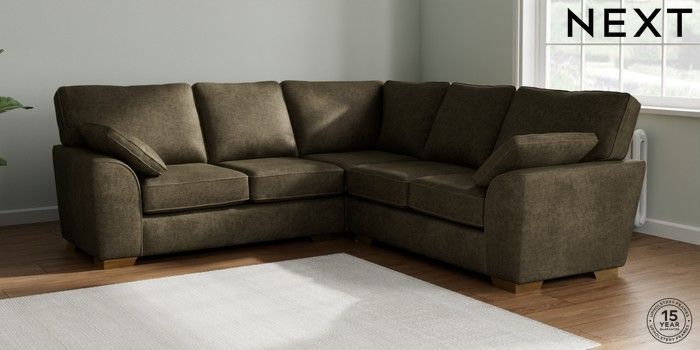 7.2.10 Buy Stamford Medium Corner Sofa - Universal Plush Chenille Moss Green Large Square Angle - Brushed Brass from the Seasons online shop Click here to use our website with more accessibility support, for example screen readers