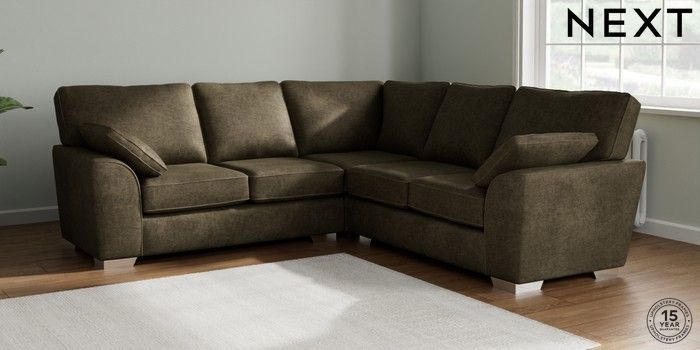 7.2.10 Buy Stamford Medium Corner Sofa - Universal Plush Chenille Moss Green Large Square Angle - Chrome Metal from the Seasons online shop Click here to use our website with more accessibility support, for example screen readers