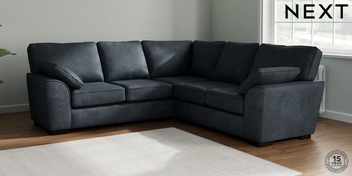7.2.10 Buy Stamford Medium Corner Sofa - Universal Plush Chenille Slate Blue Large Square Angle - Dark from the Seasons online shop Click here to use our website with more accessibility support, for example screen readers