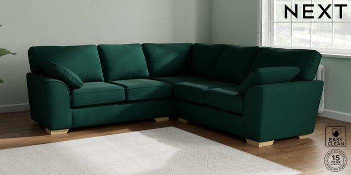 7.2.10 Buy Stamford Medium Corner Sofa - Universal Plush Velvet Easy Clean Bottle Green Large Square Angle - Light from the Seasons online shop Click here to use our website with more accessibility support, for example screen readers