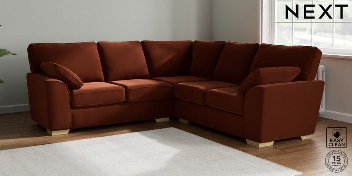 7.2.10 Buy Stamford Medium Corner Sofa - Universal Plush Velvet Easy Clean Ginger Orange Large Square Angle - Light from the Seasons online shop Click here to use our website with more accessibility support, for example screen readers