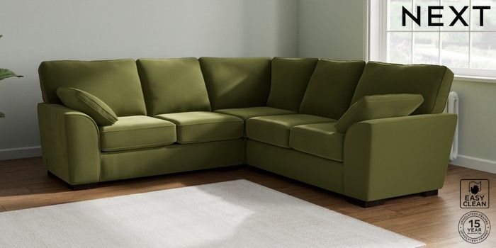 7.2.10 Buy Stamford Medium Corner Sofa - Universal Plush Velvet Easy Clean Mid Olive Green Large Square Angle - Dark from the Seasons online shop Click here to use our website with more accessibility support, for example screen readers