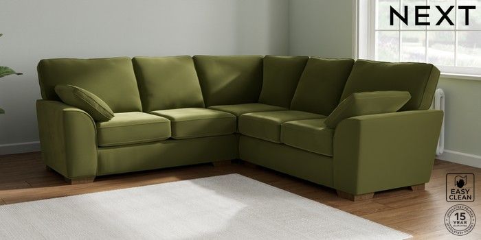7.2.10 Buy Stamford Medium Corner Sofa - Universal Plush Velvet Easy Clean Mid Olive Green Large Square Angle - Mid from the Seasons online shop Click here to use our website with more accessibility support, for example screen readers