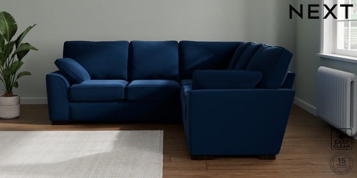 7.2.10 Buy Stamford Medium Corner Sofa - Universal Plush Velvet Easy Clean Navy Blue Large Square Angle - Dark from the Seasons online shop Click here to use our website with more accessibility support, for example screen readers