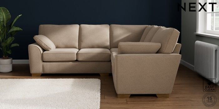 7.3.1 Buy Stamford Medium Corner Sofa - Universal Tweedy Blend Easy Clean Light Dove Natural Large Square Angle - Brushed Brass from the Seasons online shop Click here to use our website with more accessibility support, for example screen readers