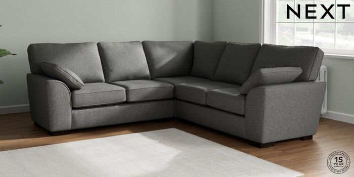 7.2.10 Buy Stamford Medium Corner Sofa - Universal Tweedy Chenille Dark Grey Large Square Angle - Dark from the Seasons online shop Click here to use our website with more accessibility support, for example screen readers