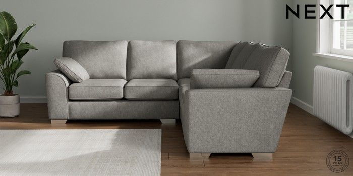 7.2.10 Buy Stamford Medium Corner Sofa - Universal Tweedy Chenille Mid Grey Large Square Angle - Chrome Metal from the Seasons online shop Click here to use our website with more accessibility support, for example screen readers