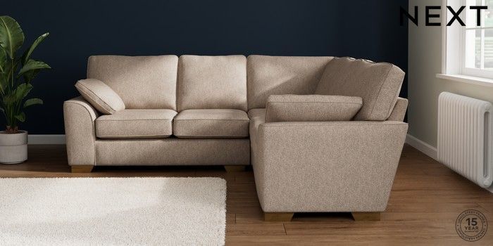 7.2.10 Buy Stamford Medium Corner Sofa - Universal Tweedy Chenille Mid Natural Large Square Angle - Brushed Brass from the Seasons online shop Click here to use our website with more accessibility support, for example screen readers