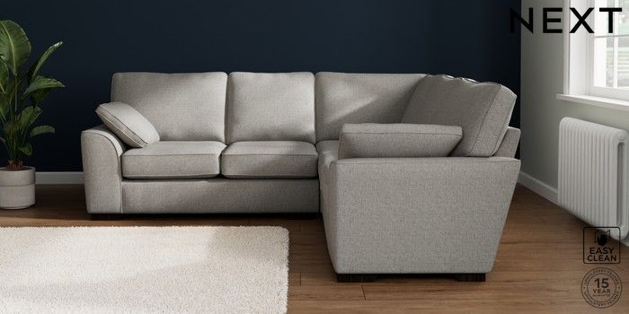 7.2.10 Buy Stamford Medium Corner Sofa - Universal Woven Chenille Easy Clean Light Grey Large Square Angle - Dark from the Seasons online shop Click here to use our website with more accessibility support, for example screen readers
