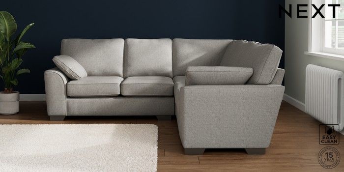 7.2.10 Buy Stamford Medium Corner Sofa - Universal Woven Chenille Easy Clean Light Grey Large Square Angle - Gunmetal from the Seasons online shop Click here to use our website with more accessibility support, for example screen readers