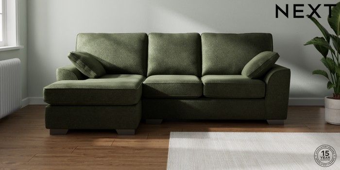 7.3.1 Buy Stamford Medium Sofa Chaise - Left Hand Boucle Chenille Dark Moss Green Large Square Angle - Gunmetal from the Seasons online shop Click here to use our website with more accessibility support, for example screen readers