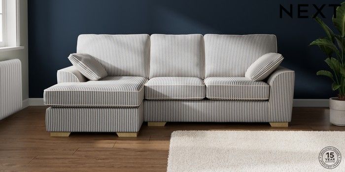 7.3.1 Buy Stamford Medium Sofa Chaise - Left Hand Chenille Stripe Slate Blue Large Square Angle - Light from the Seasons online shop Click here to use our website with more accessibility support, for example screen readers