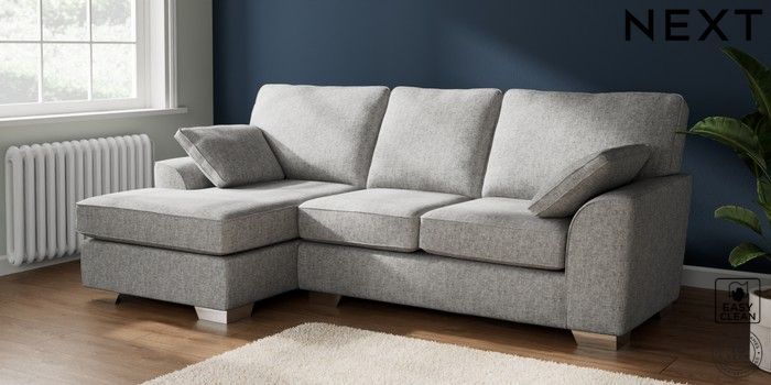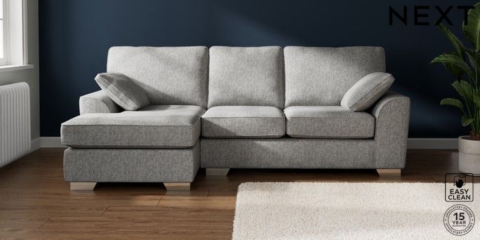 7.2.10 Buy Stamford Medium Sofa Chaise - Left Hand Chunky Boucle Easy Clean Light Grey Large Square Angle - Chrome Metal from the Seasons online shop Click here to use our website with more accessibility support, for example screen readers