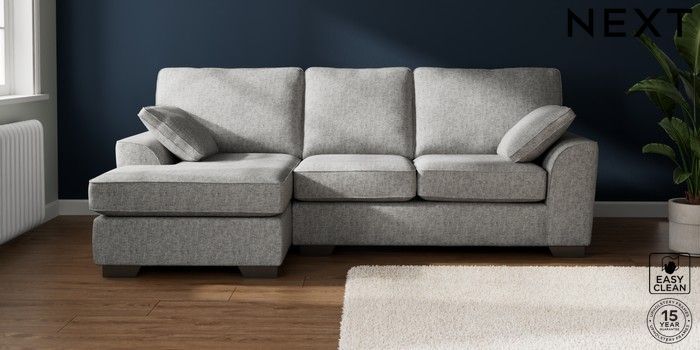 7.2.10 Buy Stamford Medium Sofa Chaise - Left Hand Chunky Boucle Easy Clean Light Grey Large Square Angle - Gunmetal from the Seasons online shop Click here to use our website with more accessibility support, for example screen readers