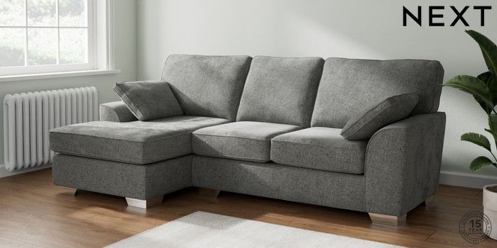 7.2.10 Buy Stamford Medium Sofa Chaise - Left Hand Chunky Chenille Dark Grey Large Square Angle - Chrome Metal from the Seasons online shop Click here to use our website with more accessibility support, for example screen readers