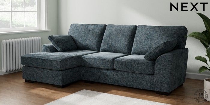 7.2.10 Buy Stamford Medium Sofa Chaise - Left Hand Chunky Chenille Dark Navy Blue Large Square Angle - Dark from the Seasons online shop Click here to use our website with more accessibility support, for example screen readers