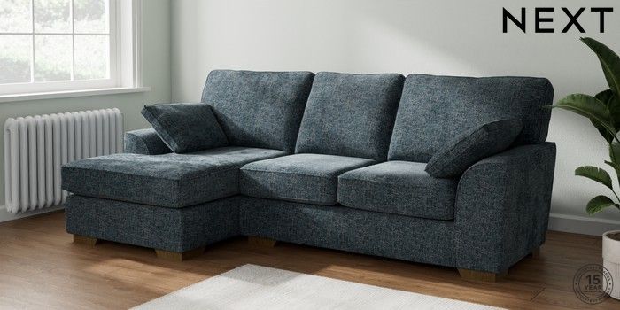 7.2.10 Buy Stamford Medium Sofa Chaise - Left Hand Chunky Chenille Dark Navy Blue Large Square Angle - Mid from the Seasons online shop Click here to use our website with more accessibility support, for example screen readers