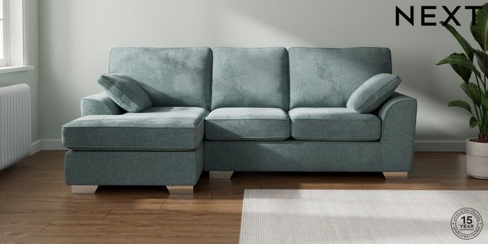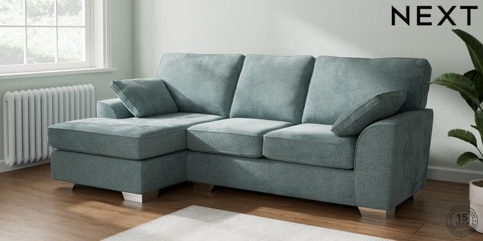 7.2.10 Buy Stamford Medium Sofa Chaise - Left Hand Chunky Chenille Light Teal Green Large Square Angle - Chrome Metal from the Seasons online shop Click here to use our website with more accessibility support, for example screen readers