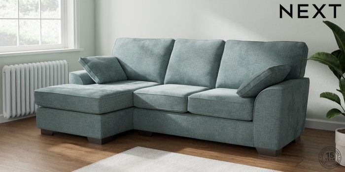 7.3.1 Buy Stamford Medium Sofa Chaise - Left Hand Chunky Chenille Light Teal Green Large Square Angle - Gunmetal from the Seasons online shop Click here to use our website with more accessibility support, for example screen readers