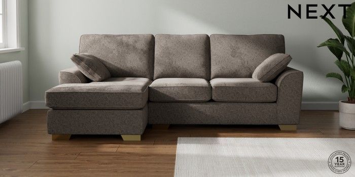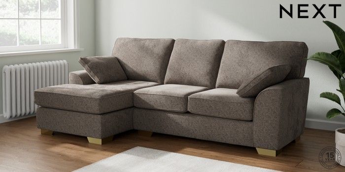 7.2.10 Buy Stamford Medium Sofa Chaise - Left Hand Chunky Chenille Mink Brown Large Square Angle - Brushed Brass from the Seasons online shop Click here to use our website with more accessibility support, for example screen readers
