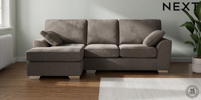 7.2.10 Buy Stamford Medium Sofa Chaise - Left Hand Chunky Chenille Mink Brown Large Square Angle - Chrome Metal from the Seasons online shop Click here to use our website with more accessibility support, for example screen readers