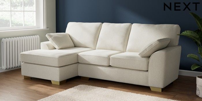7.2.10 Buy Stamford Medium Sofa Chaise - Left Hand Chunky Texture Oyster Large Square Angle - Brushed Brass from the Seasons online shop Click here to use our website with more accessibility support, for example screen readers