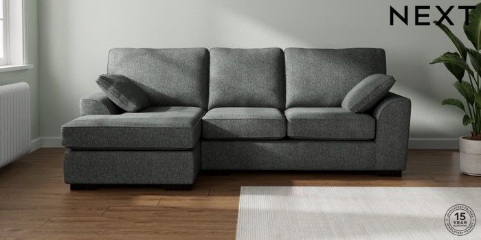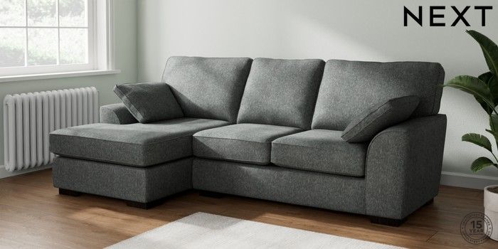 7.2.10 Buy Stamford Medium Sofa Chaise - Left Hand Cotswold Chenille Dark Grey Large Square Angle - Dark from the Seasons online shop Click here to use our website with more accessibility support, for example screen readers