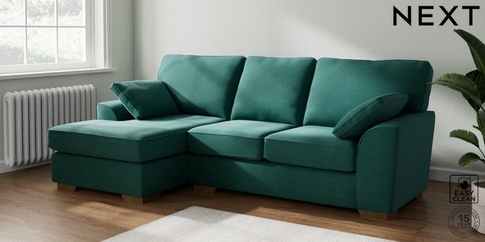 7.2.10 Buy Stamford Medium Sofa Chaise - Left Hand Fine Chenille Easy Clean Dark Juniper Green Large Square Angle - Mid from the Seasons online shop Click here to use our website with more accessibility support, for example screen readers