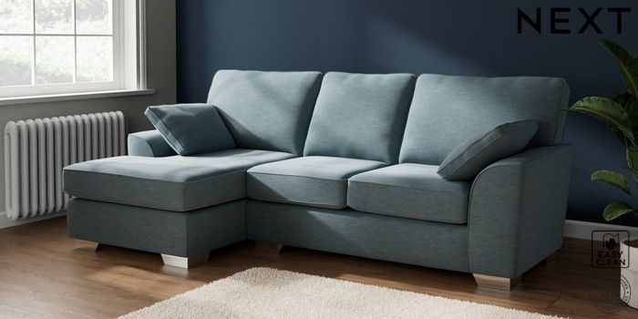 7.2.10 Buy Stamford Medium Sofa Chaise - Left Hand Fine Chenille Easy Clean Mid Blue Large Square Angle - Chrome Metal from the Seasons online shop Click here to use our website with more accessibility support, for example screen readers