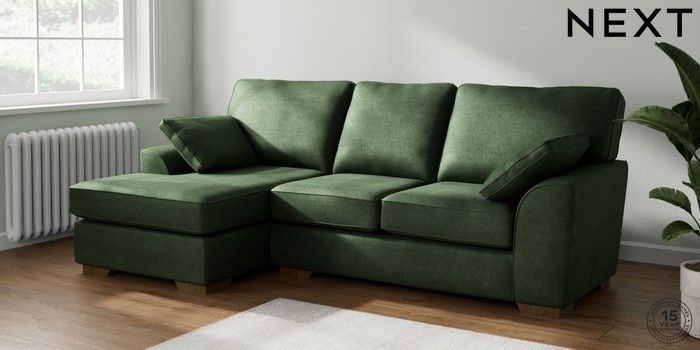 7.2.10 Buy Stamford Medium Sofa Chaise - Left Hand Luxe Chenille Dark Green Large Square Angle - Mid from the Seasons online shop Click here to use our website with more accessibility support, for example screen readers