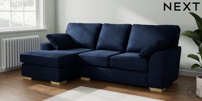7.2.10 Buy Stamford Medium Sofa Chaise - Left Hand Luxe Chenille Navy Blue Large Square Angle - Light from the Seasons online shop Click here to use our website with more accessibility support, for example screen readers