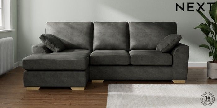 7.3.1 Buy Stamford Medium Sofa Chaise - Left Hand Monza Faux Leather Easy Clean Dark Grey Large Square Angle - Light from the Seasons online shop Click here to use our website with more accessibility support, for example screen readers