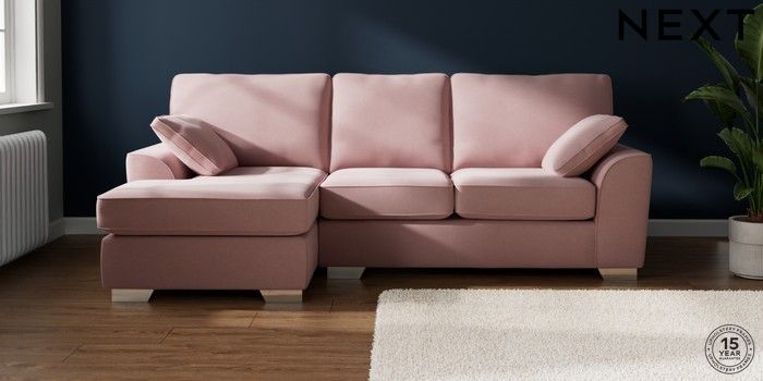 7.3.1 Buy Stamford Medium Sofa Chaise - Left Hand Natural Mix Light Rose Pink Large Square Angle - Chrome Metal from the Seasons online shop Click here to use our website with more accessibility support, for example screen readers