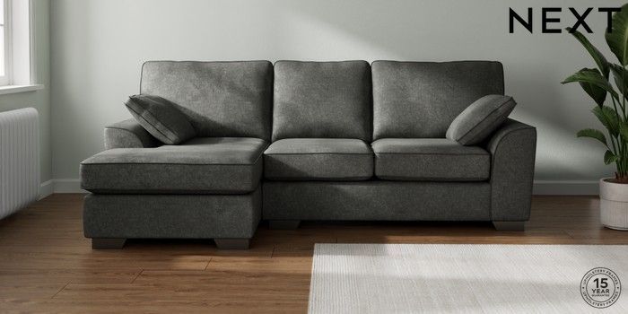 7.2.10 Buy Stamford Medium Sofa Chaise - Left Hand Plush Chenille Dark Grey Large Square Angle - Gunmetal from the Seasons online shop Click here to use our website with more accessibility support, for example screen readers
