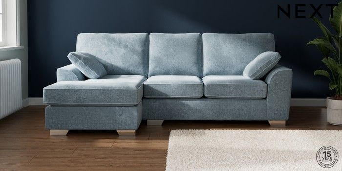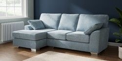 7.2.10 Buy Stamford Medium Sofa Chaise - Left Hand Plush Chenille Light Blue Large Square Angle - Chrome Metal from the Seasons online shop Click here to use our website with more accessibility support, for example screen readers