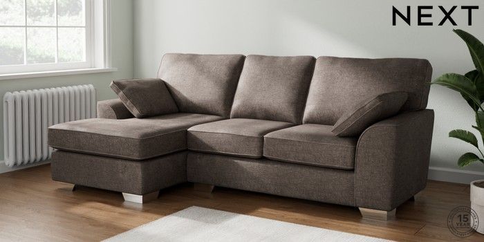 7.2.10 Buy Stamford Medium Sofa Chaise - Left Hand Plush Chenille Mink Brown Large Square Angle - Chrome Metal from the Seasons online shop Click here to use our website with more accessibility support, for example screen readers