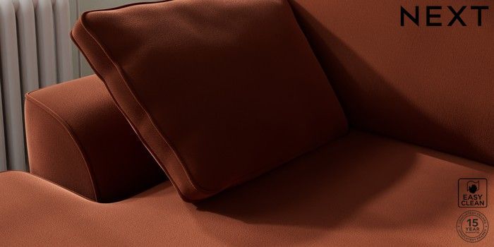 7.3.1 Buy Stamford Medium Sofa Chaise - Left Hand Plush Velvet Easy Clean Ginger Orange Large Square Angle - Brushed Brass from the Seasons online shop Click here to use our website with more accessibility support, for example screen readers