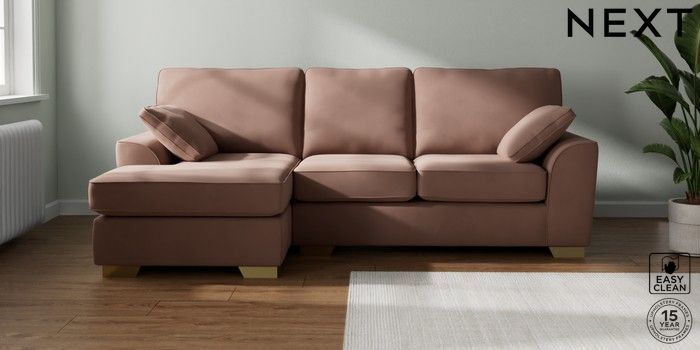 7.3.1 Buy Stamford Medium Sofa Chaise - Left Hand Plush Velvet Easy Clean Mid Natural Large Square Angle - Brushed Brass from the Seasons online shop Click here to use our website with more accessibility support, for example screen readers